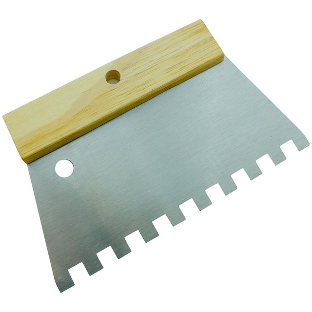 - Glue spatula with wooden structure and toothed steel blade